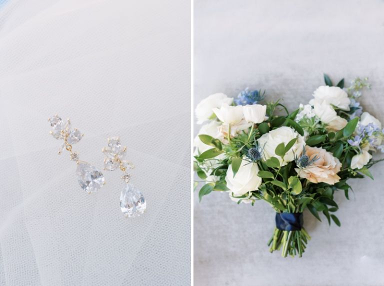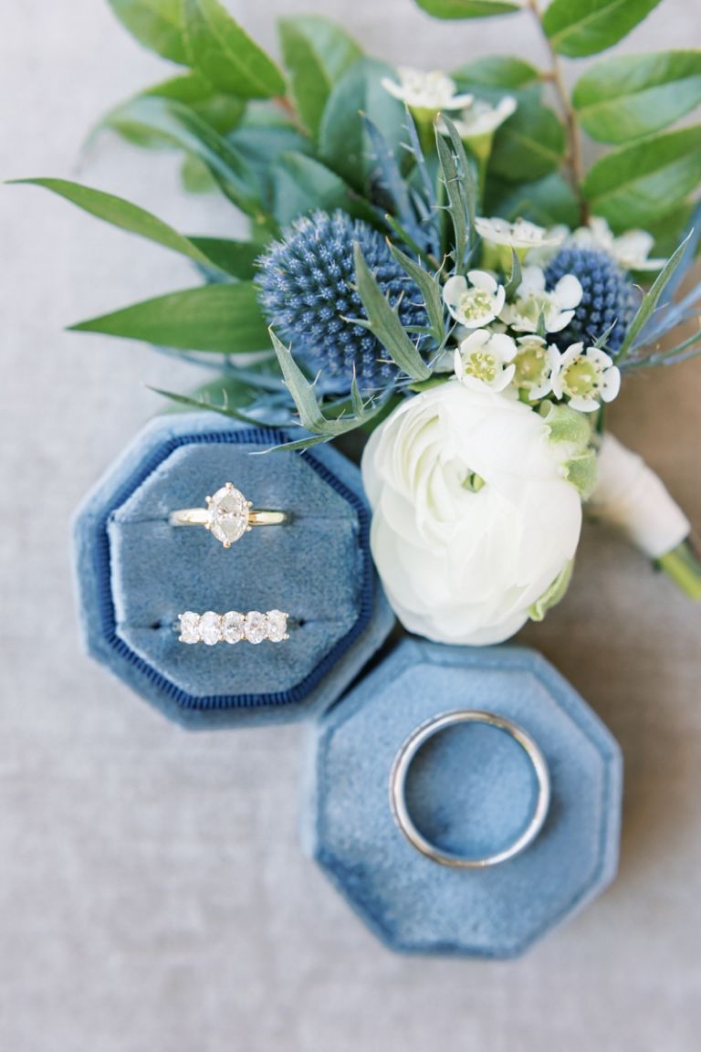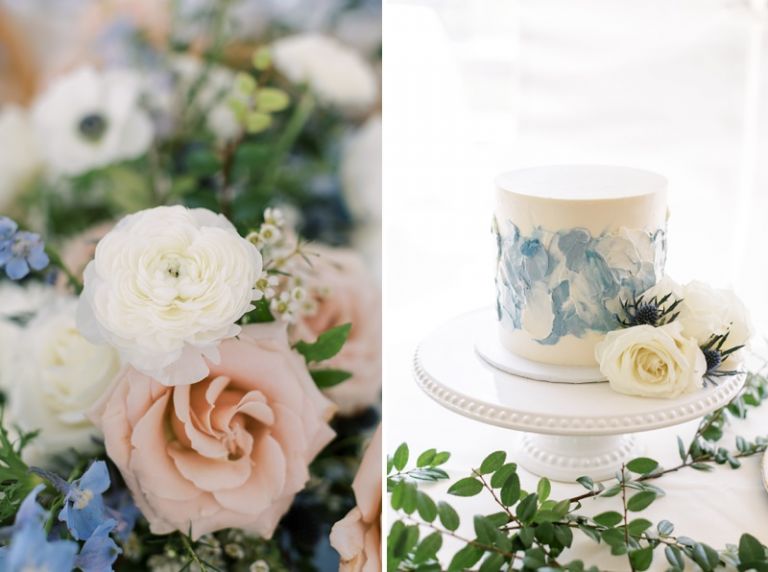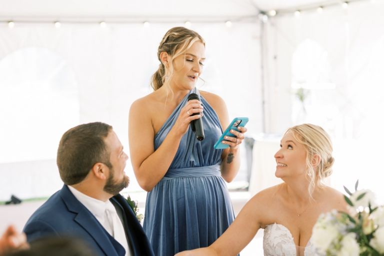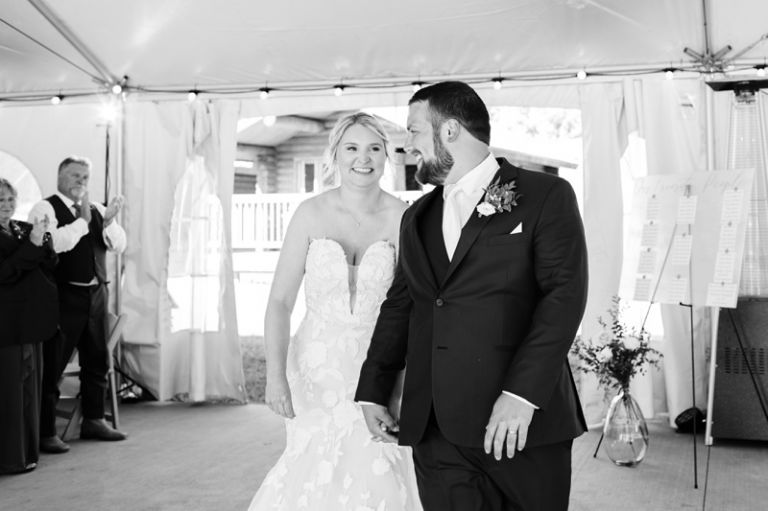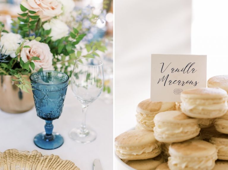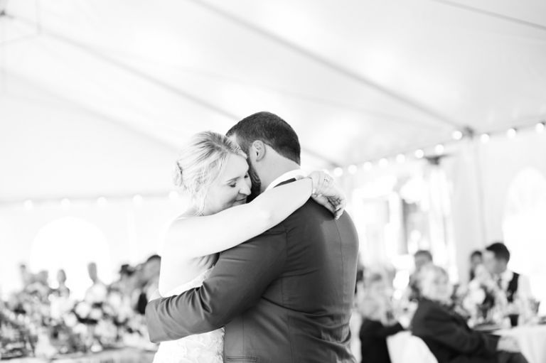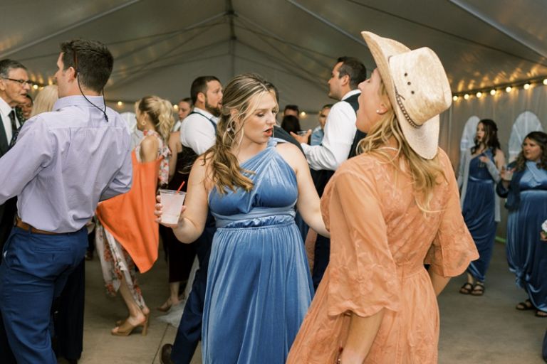 The reception was held in a large tent on the property, decorated with dusty blue and gold accents. Guests enjoyed delicious food and danced the night away. Cambri and Matt shared their first dance as husband and wife before we went back out for a gorgeous sunset session by the river.