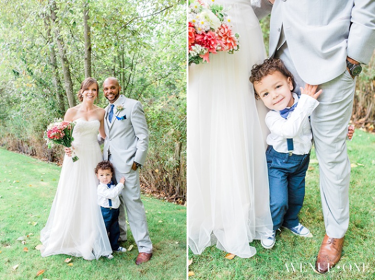 Blair Acres in Puyallup, WA was a drop dead gorgeous venue, especially in the fall. I couldn’t believe the amazing colors in the surrounding foliage. It was perfect! We took tons of portraits of the two of them and even some with their adorable son, Kai just before the sun decided to show itself in full force.