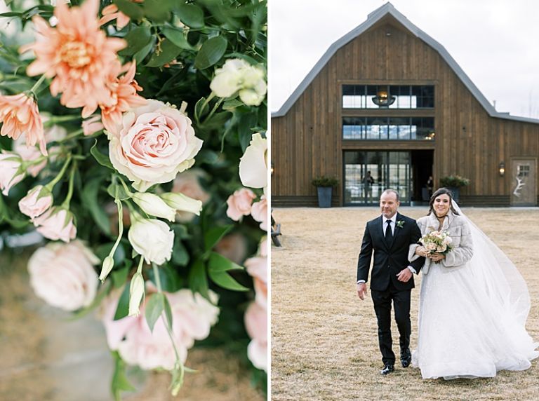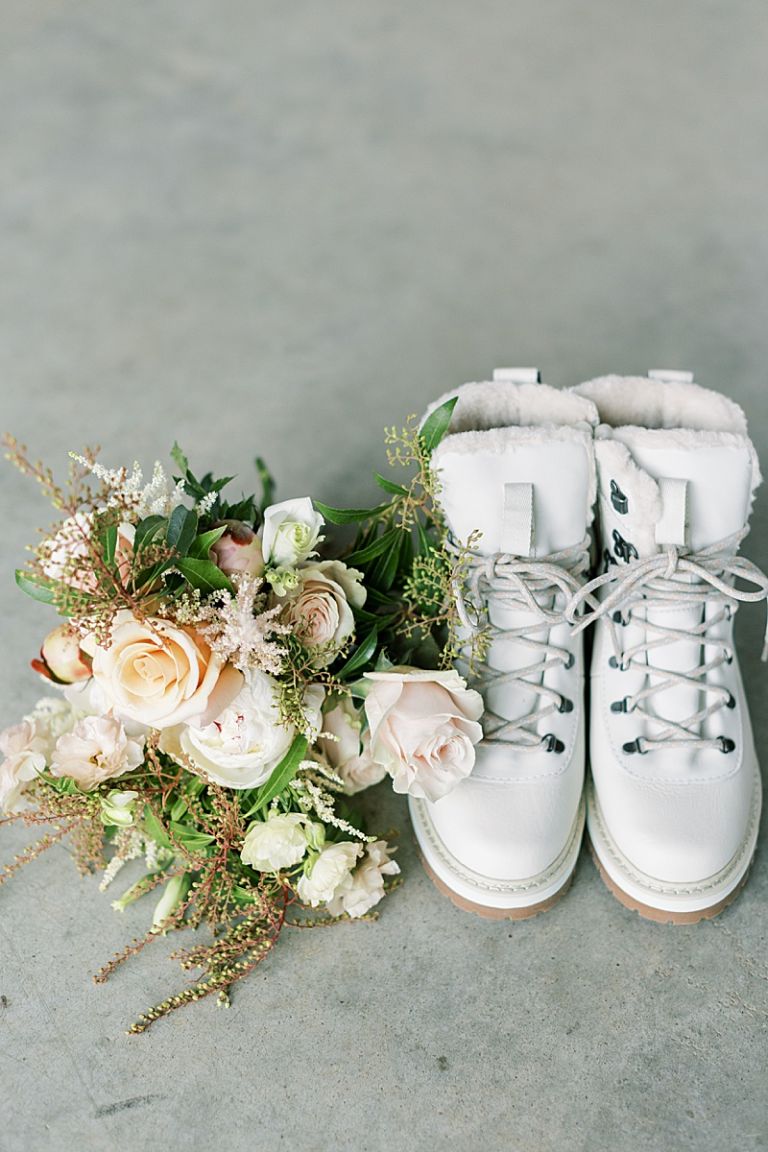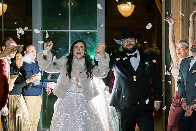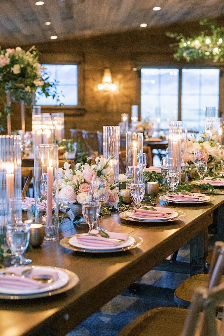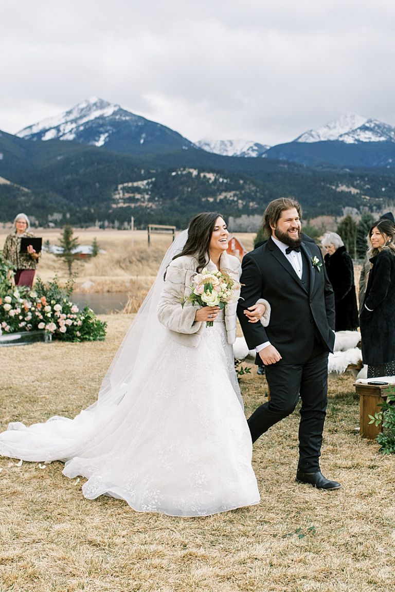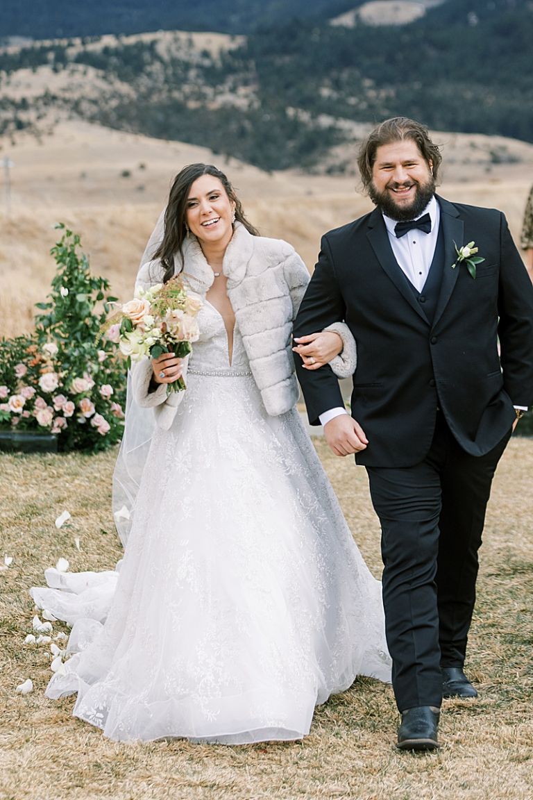 The couple’s outdoor ceremony was breathtaking, with the dramatic mountains and soft winter light setting an intimate, romantic tone. Guests stayed cozy as they witnessed Taylor and Jake exchange vows in a serene and picturesque setting.
