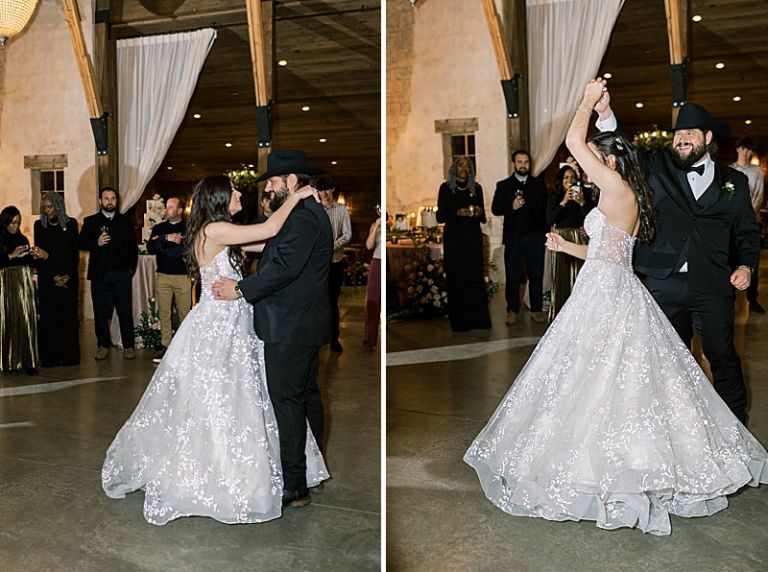 The celebration continued indoors at Copper Rose Ranch’s inviting reception space. The warm and rustic interior was a perfect retreat, where guests enjoyed a delicious meal and lively dancing.