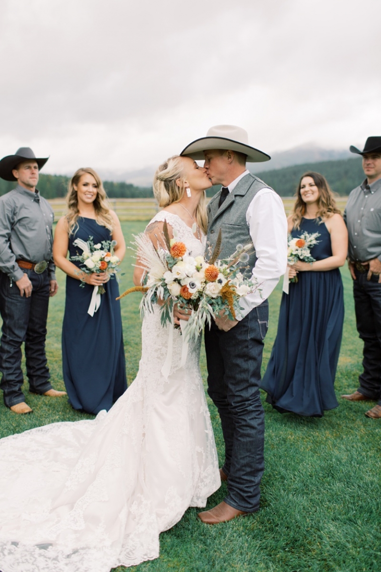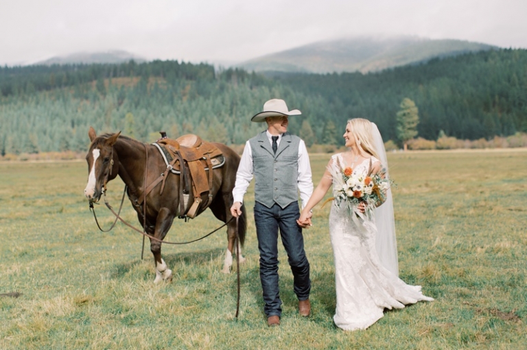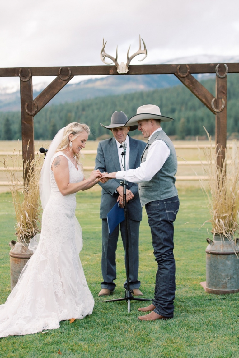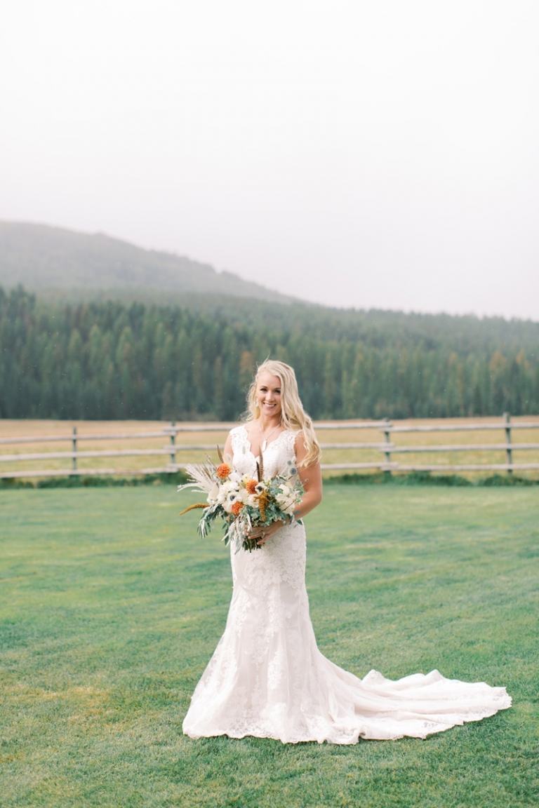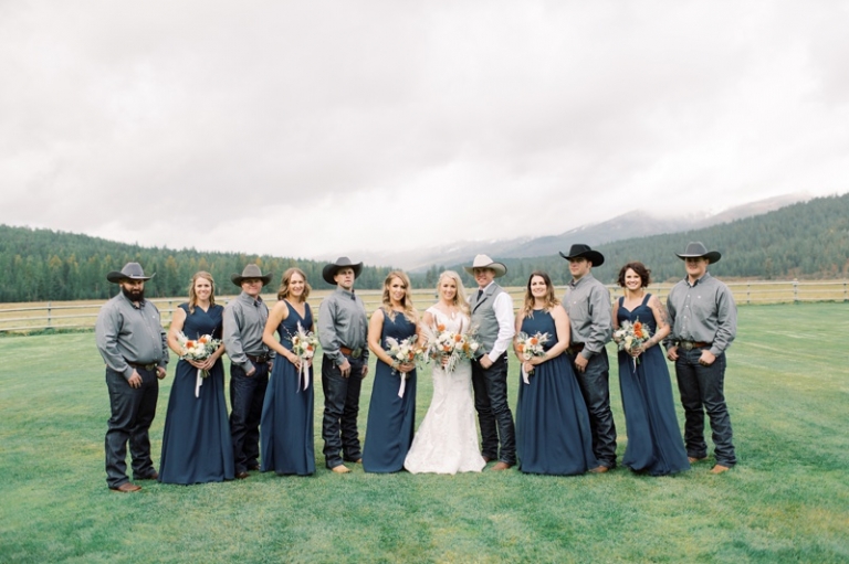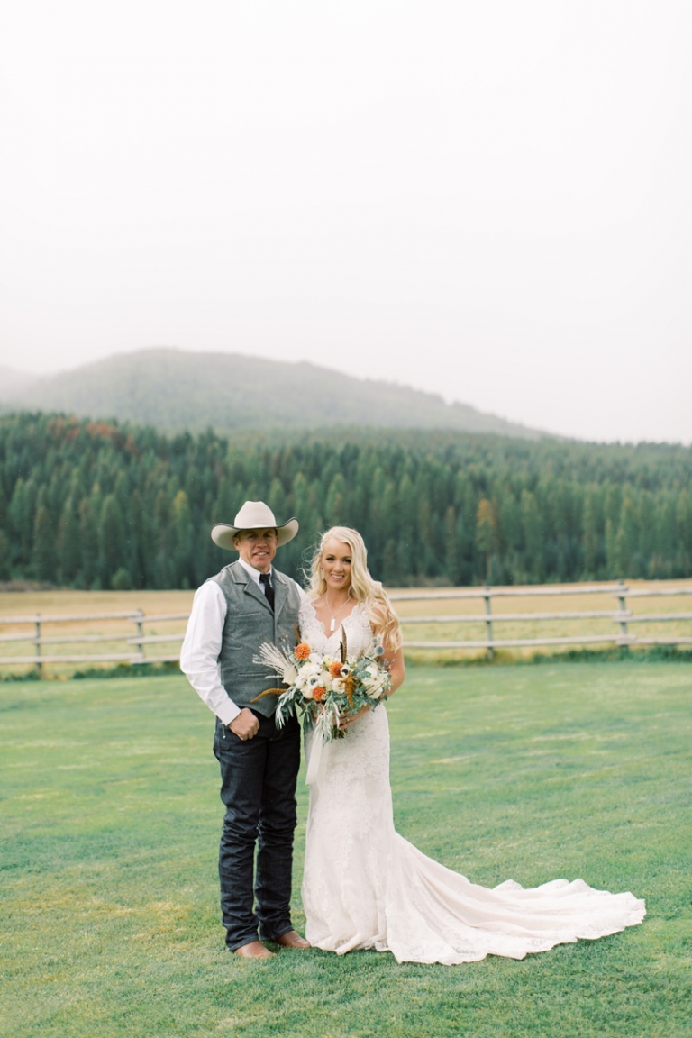 Stephanie wore an intricately laced dress and carried the most stunning bouquet with a variety of blooms and dried florals alike. The couple loved horses and brought them from Washington so they could be a part of their big day. Their western theme was done beautifully and was complimented by the venue. High Meadow Mountain Ranch is a stunning piece of property about 30 miles outside of Missoula. Their grounds and scenery were nothing short of jaw dropping.