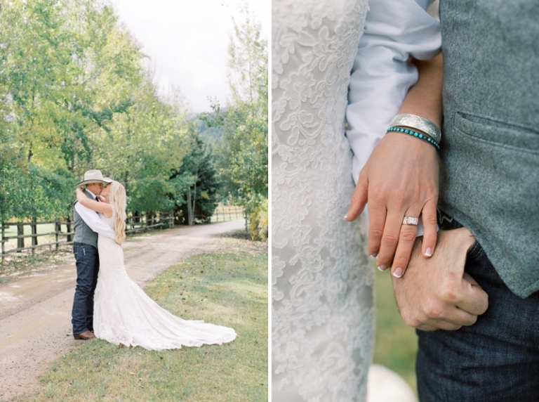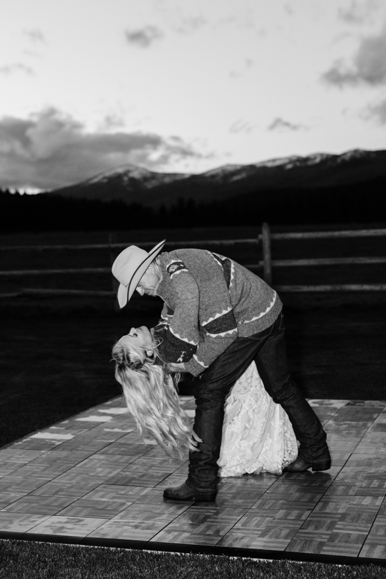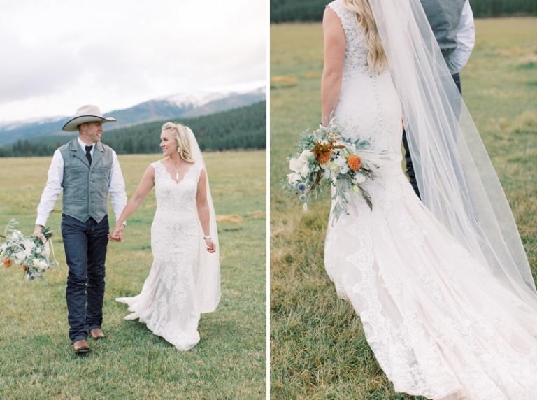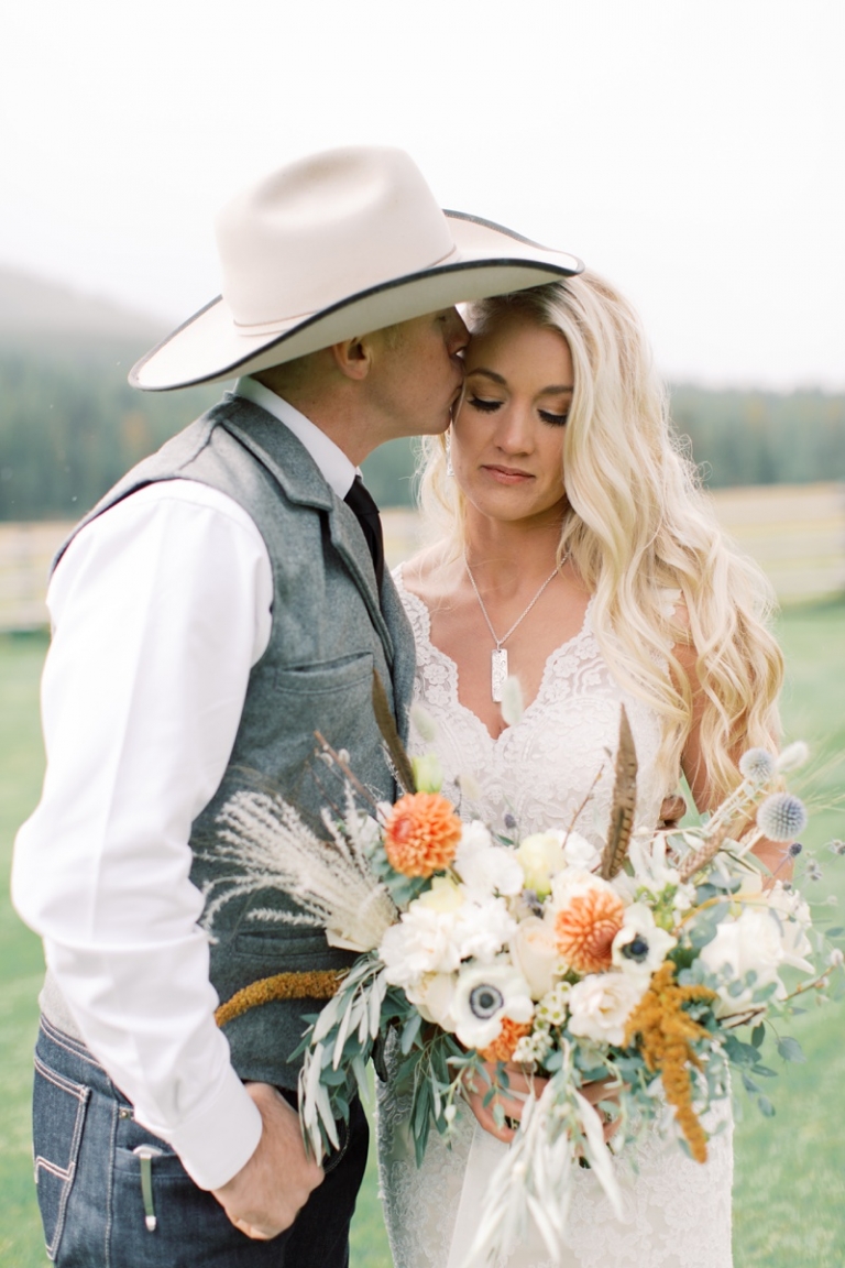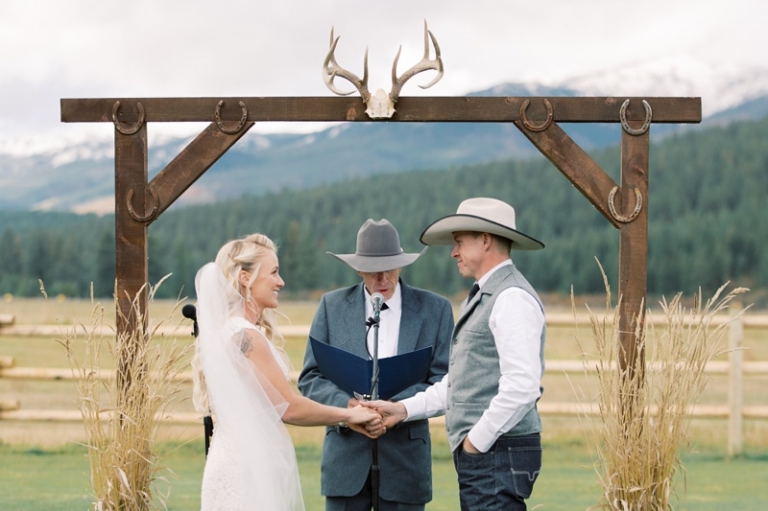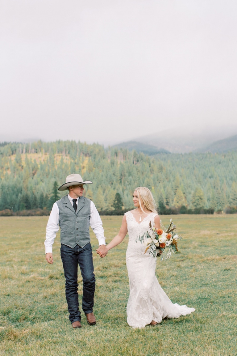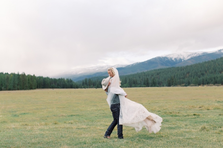 Stephanie wore an intricately laced dress and carried the most stunning bouquet with a variety of blooms and dried florals alike. The couple loved horses and brought them from Washington so they could be a part of their big day. Their western theme was done beautifully and was complimented by the venue. High Meadow Mountain Ranch is a stunning piece of property about 30 miles outside of Missoula. Their grounds and scenery were nothing short of jaw dropping.
