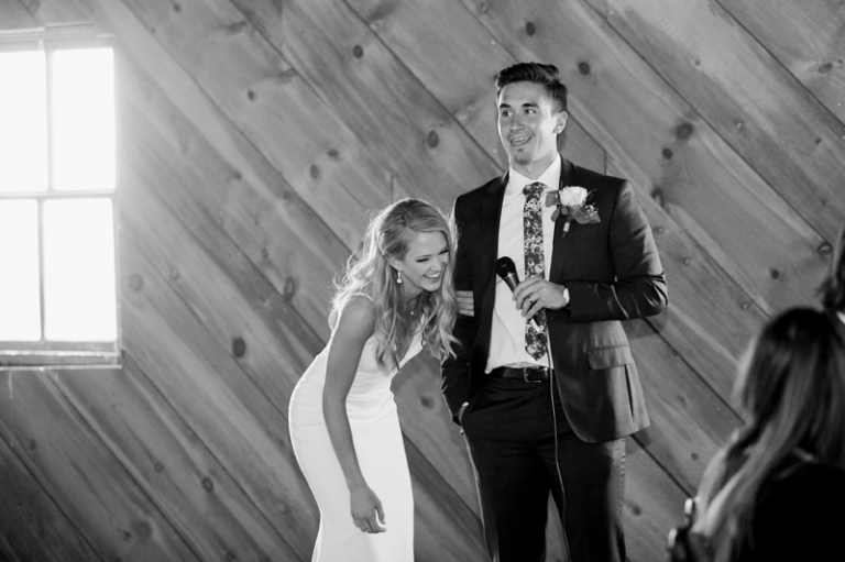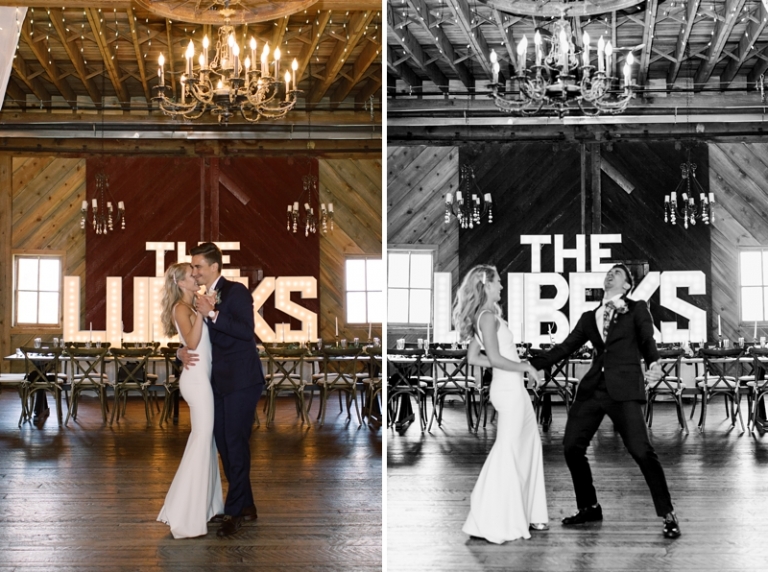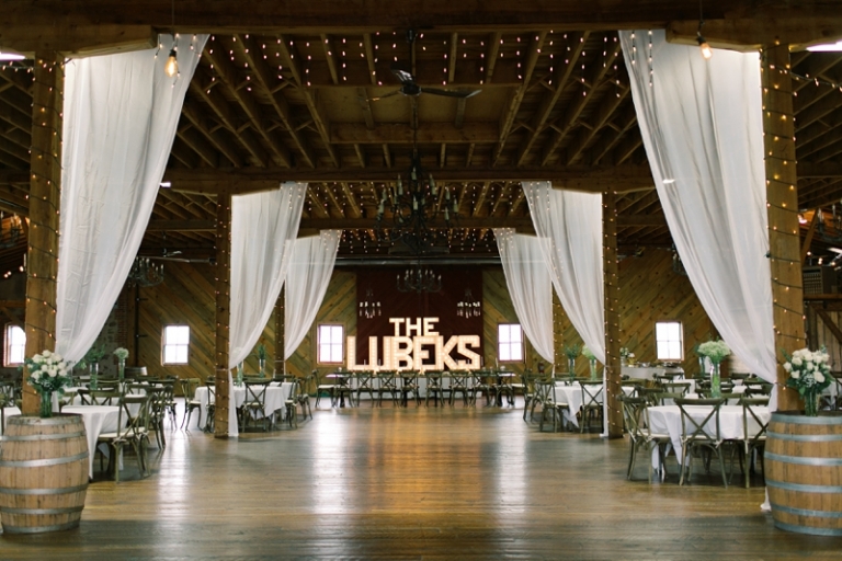 This particular day in June could not have been more perfect. It was amazingly beautiful with 70 degree temps, beautiful cloud cover and lush greenery from all of the rain we’ve had this year. When I walked into the historic red barn, I was stunned. All of the details looked so amazing with the stand-out centerpiece “The Lubeks” brightly lit and creating the most amazing vibe for a great party. Be sure to scroll to the end to see it! Lyndsie’s dad MADE their sign AND the archway that they stood under for their ceremony. I love when couple’s have certain very personal elements to their day… it makes it that much more special to them when they look back on their photos.