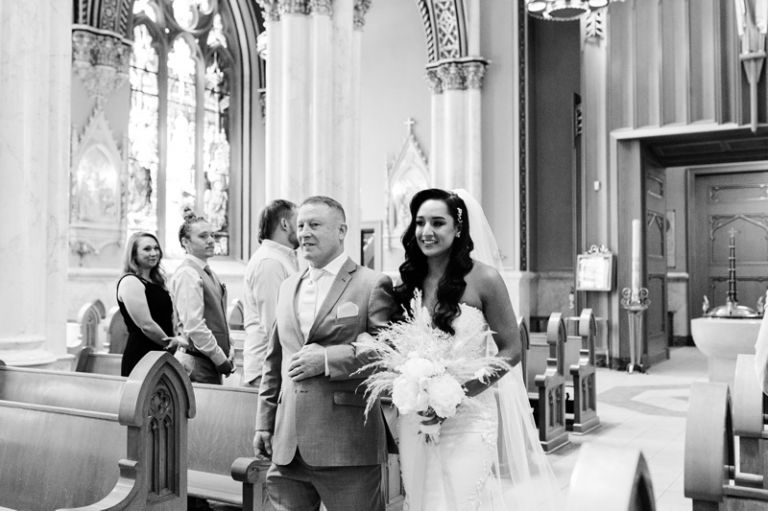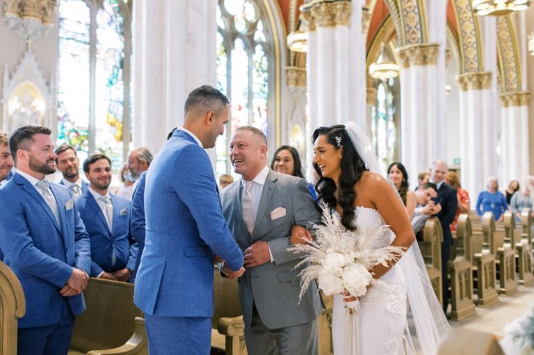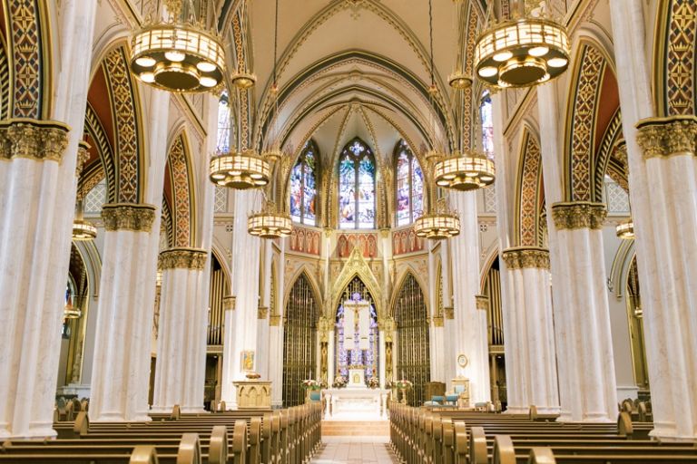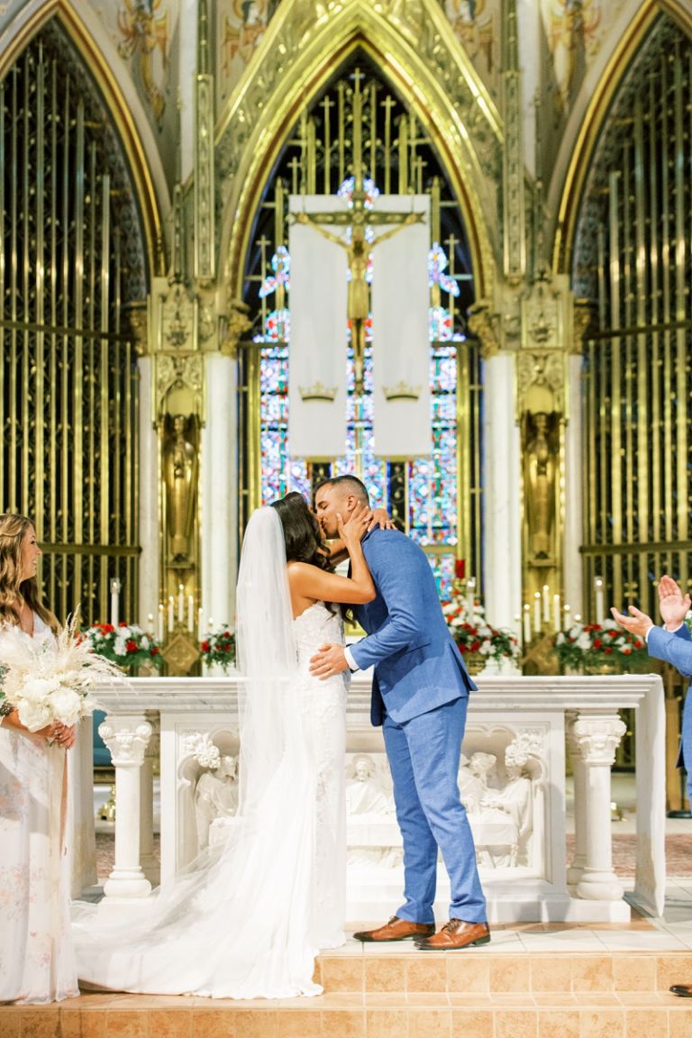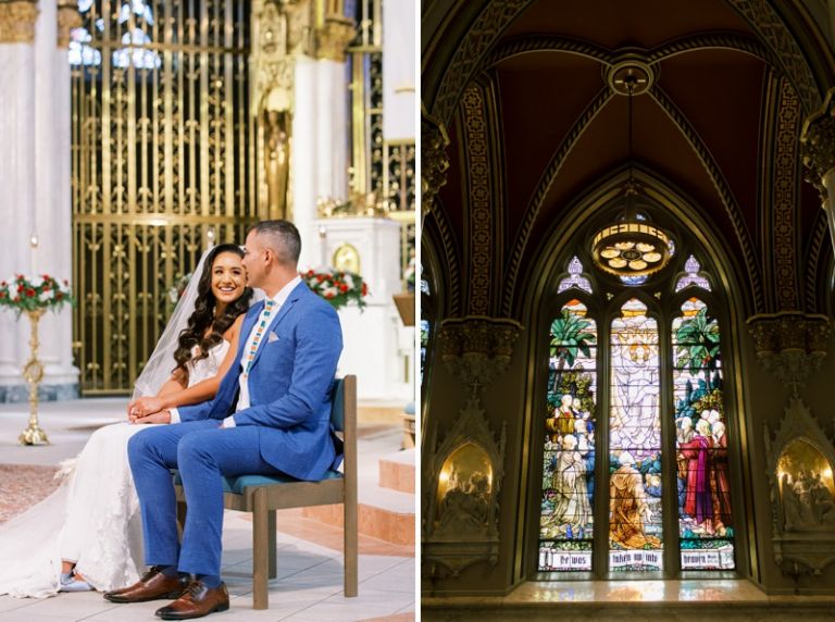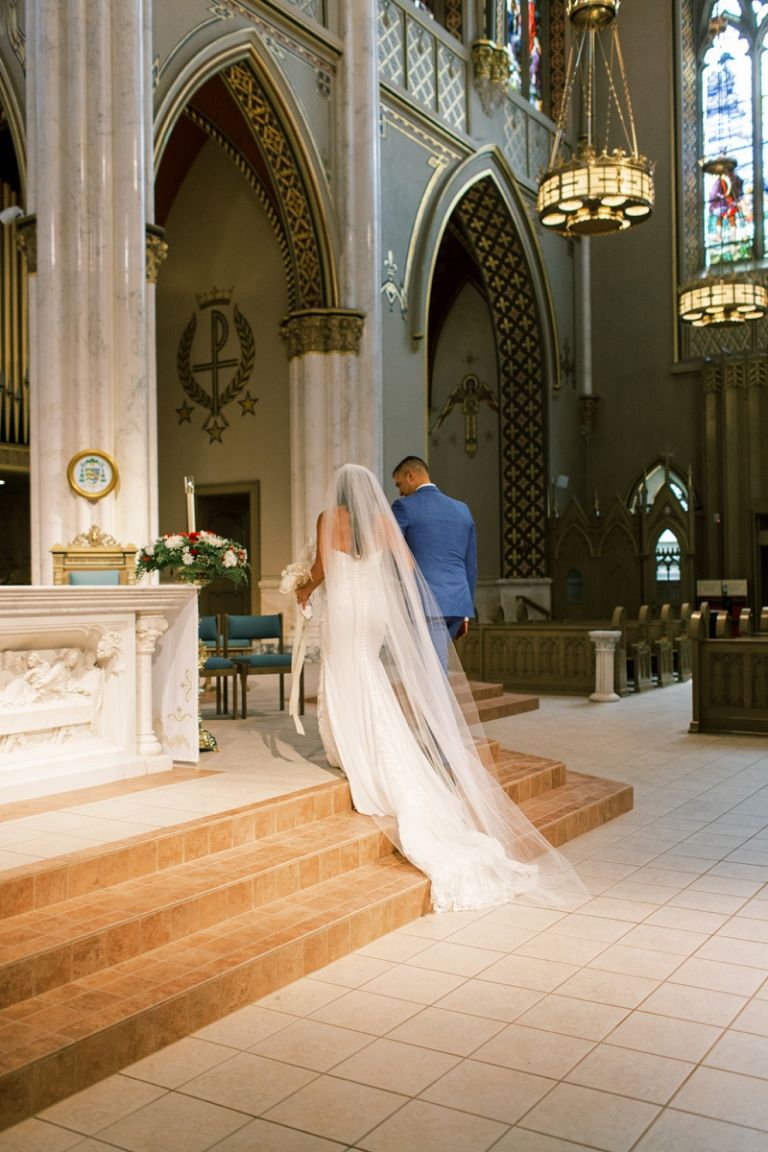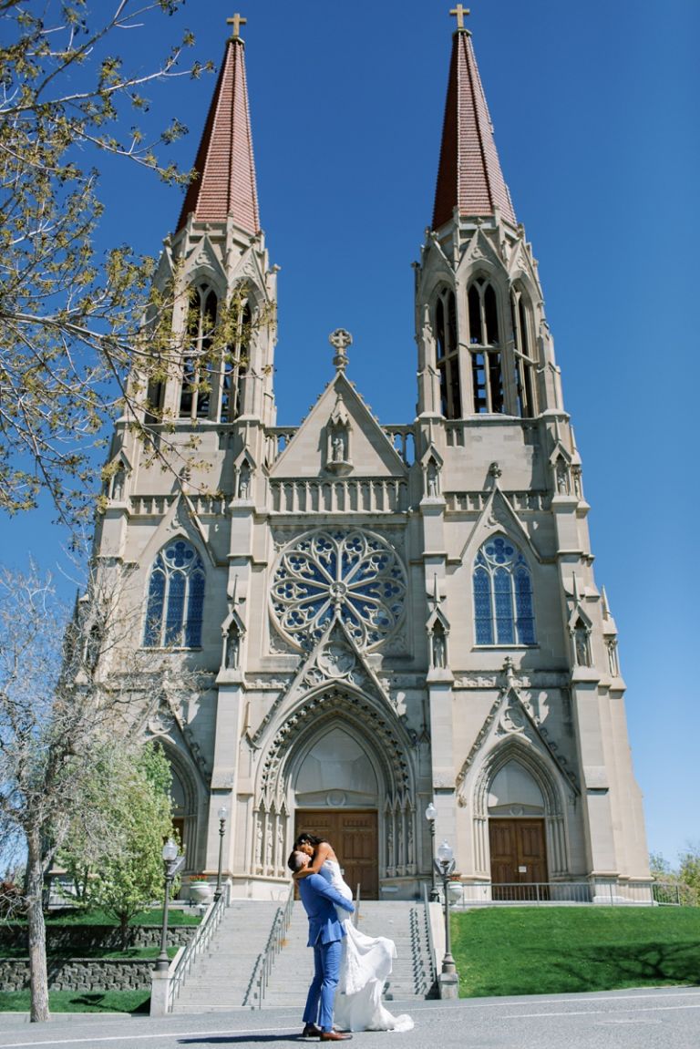 The Cathedral of St. Helena is a stunning venue for a wedding ceremony. The cathedral is located on a hill overlooking the city of Helena, and it has towering stained glass windows and an ornate interior. Their ceremony was beautiful with their closest family and friends in attendance.