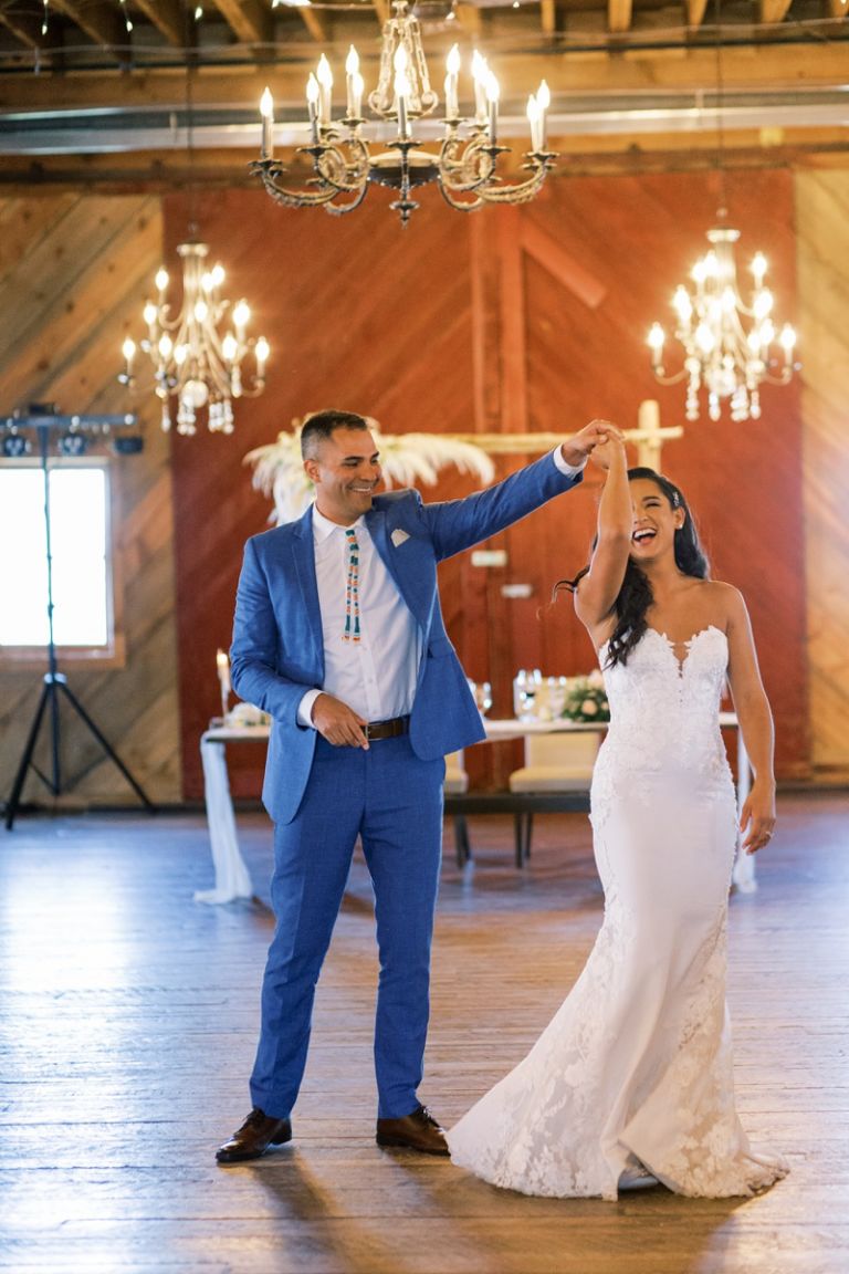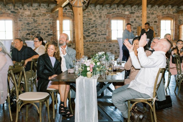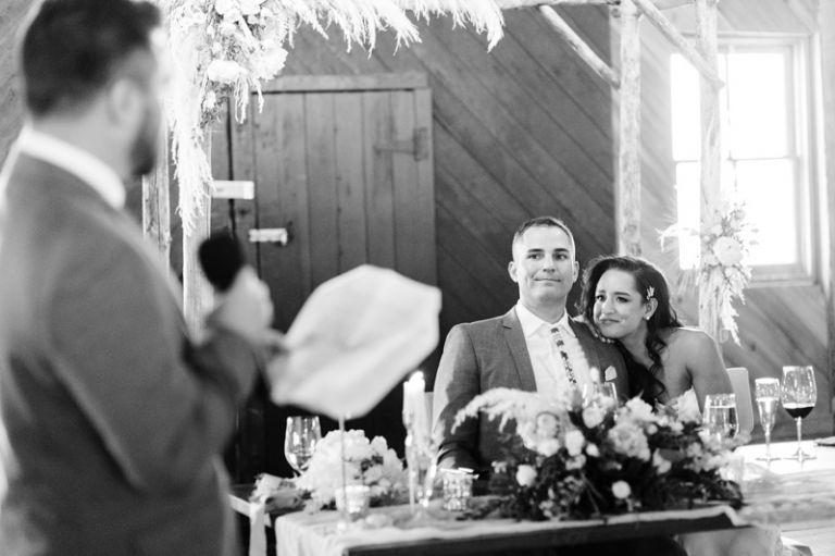 The red barn at the Kleffner Ranch is a historic landmark, and it was the perfect setting for Robyn and Dylan’s reception. The barn was built in 1887, and it has been meticulously restored. It is a beautiful space, with high ceilings, exposed beams, and wood floors. The reception was decorated beautifully with large floral centerpieces and accent lighting throughout.