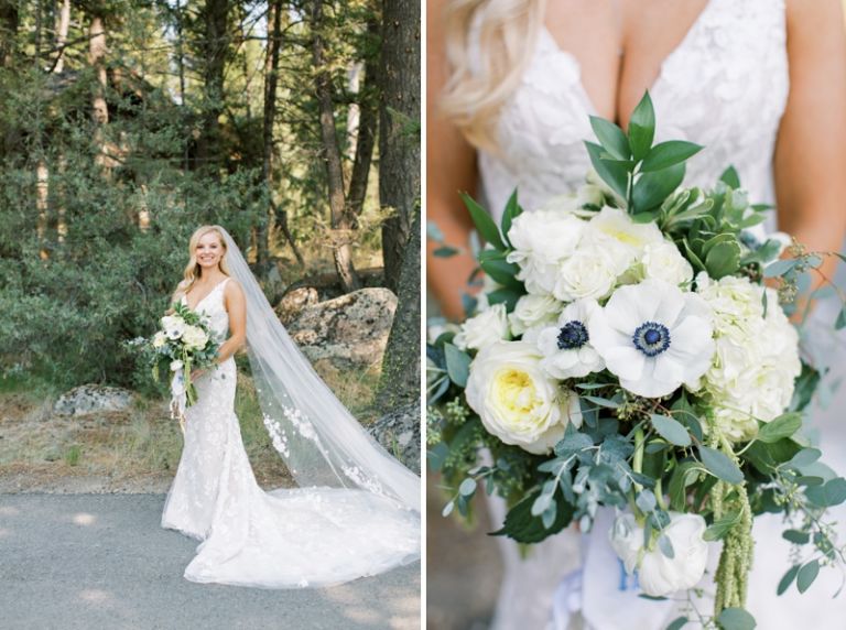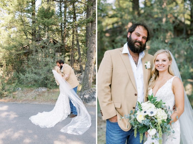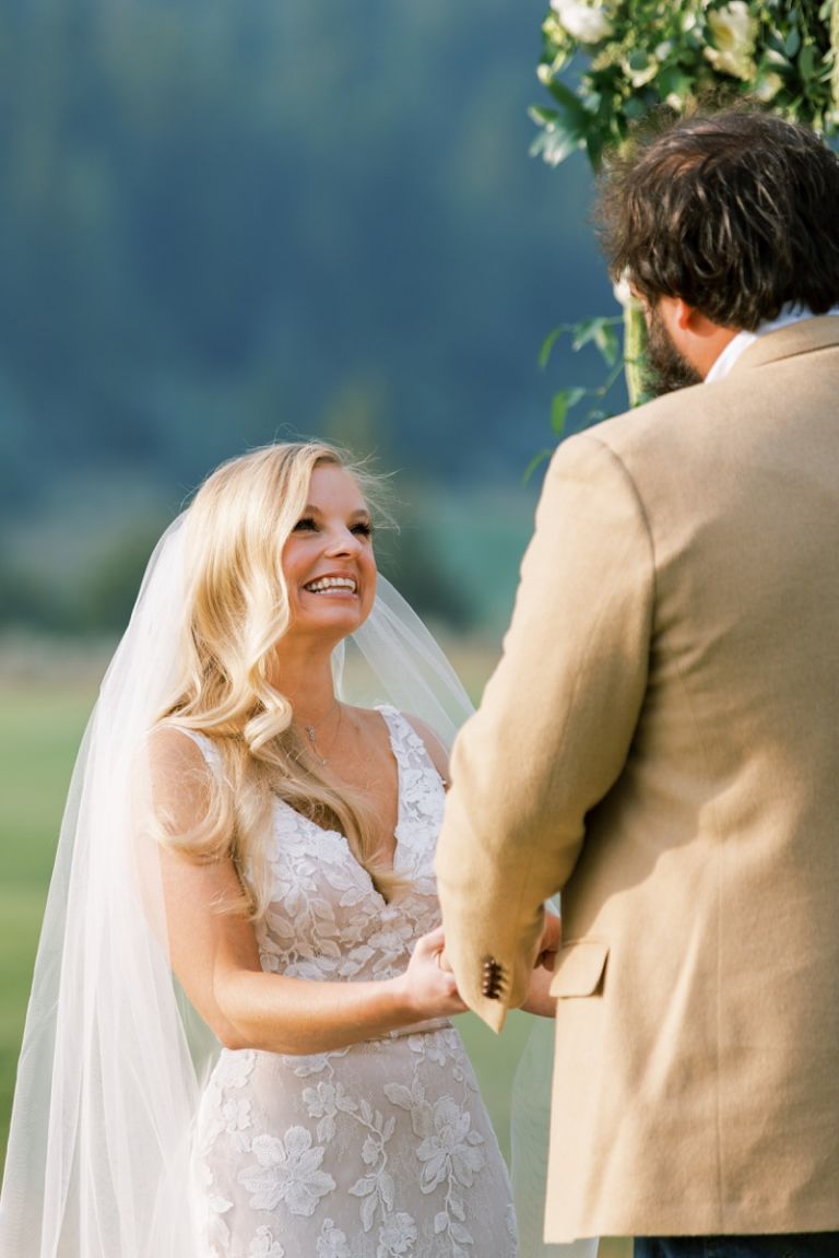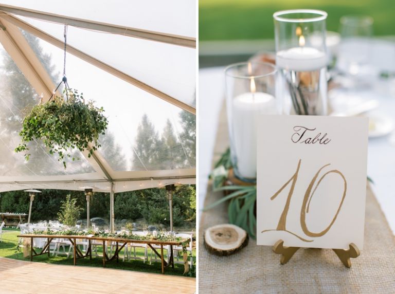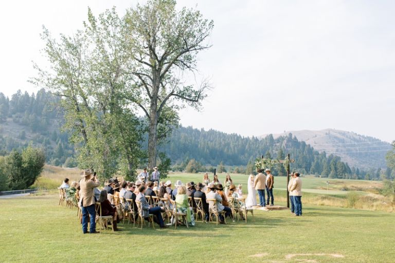 The bride and groom chose Rock Creek Cattle Company for their wedding because they wanted a rustic, outdoor setting. The club is located on a working cattle ranch and it was the perfect place to host their out-of-town guests. The club is home of one of America’s top 100 golf courses and has many beautiful lodge buildings and activities for guests. The reception was held in a tent on the property.